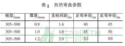 彎弧板自然彎曲參數,見表1。